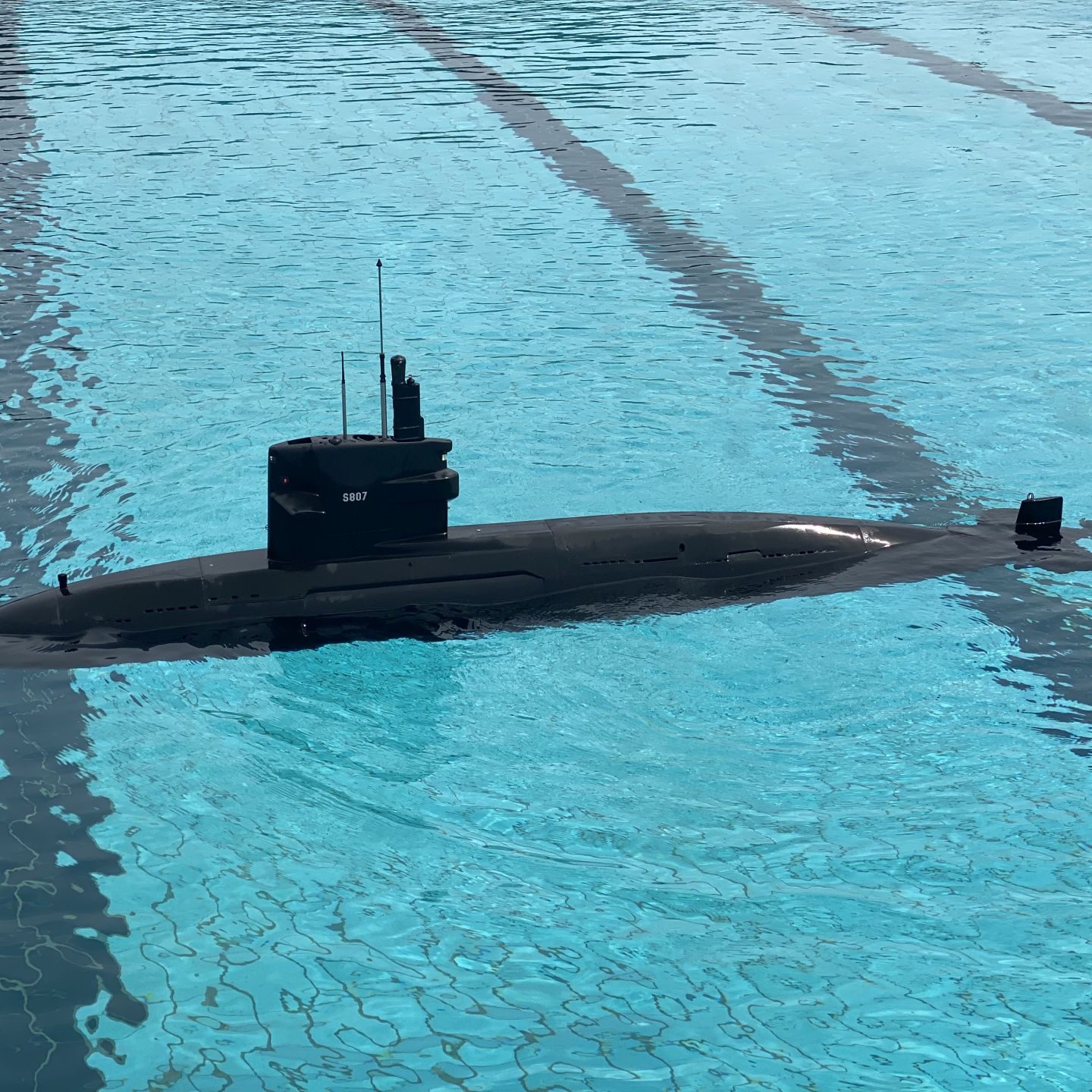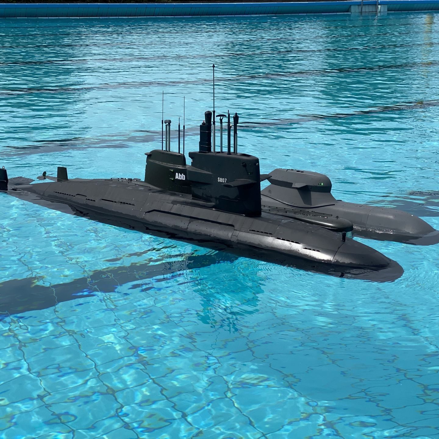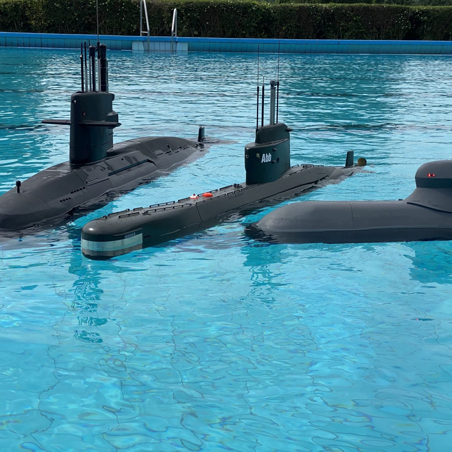 The last meeting I attended was quite some time ago. Therefore, the meeting in Mainz-Kostheim was a great opportunity. I arrived on site around 9:00 am and drove to the Beutners, who had stayed overnight near the pool. From 10:00 am, the pool opened its doors, and we could set up our boats. The Tijgerhaai had been dry for almost 10 years and definitely needed to be put back in the water after being retrofitted with Lifepozellen. The pool itself consists of two large basins. The surface ships operated separately from the submarines, so we had one basin entirely to ourselves. The large size allowed the big boats to sail properly.