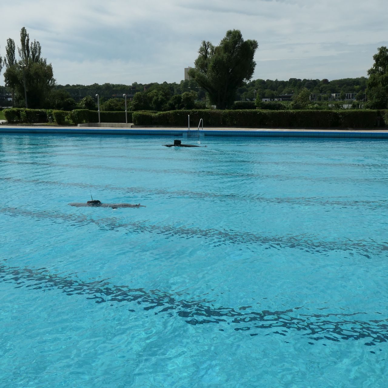 Das letzte Treffen bei dem ich zu Besuch war, lag nun auch schon einige Zeit zurück. Daher bot sich das Treffen in Mainz-Kostheim natürlich an. Gegen 9:00 Uhr war ich vor Ort und fuhr zu Beutners, die in der Nähe des Bades übernachtet hatten. Ab 10:00 öffnete dann das Bad seine Pforten und wir konnten unsere Boote aufstellen. Die Tijgerhaai stand nun schon fast 10 Jahre auf dem Trockenen und musste nach der Umrüstung auf Lifepozellen unbedingt mal wieder ins Wasser. Das Bad selbst besteht aus 2 großen Becken. Die Überwasserschiffe fuhren getrennt von den U-Booten und so hatten wir ein Becken ganz für uns. Durch die Größe konnte man die großen Boote richtig ausfahren.