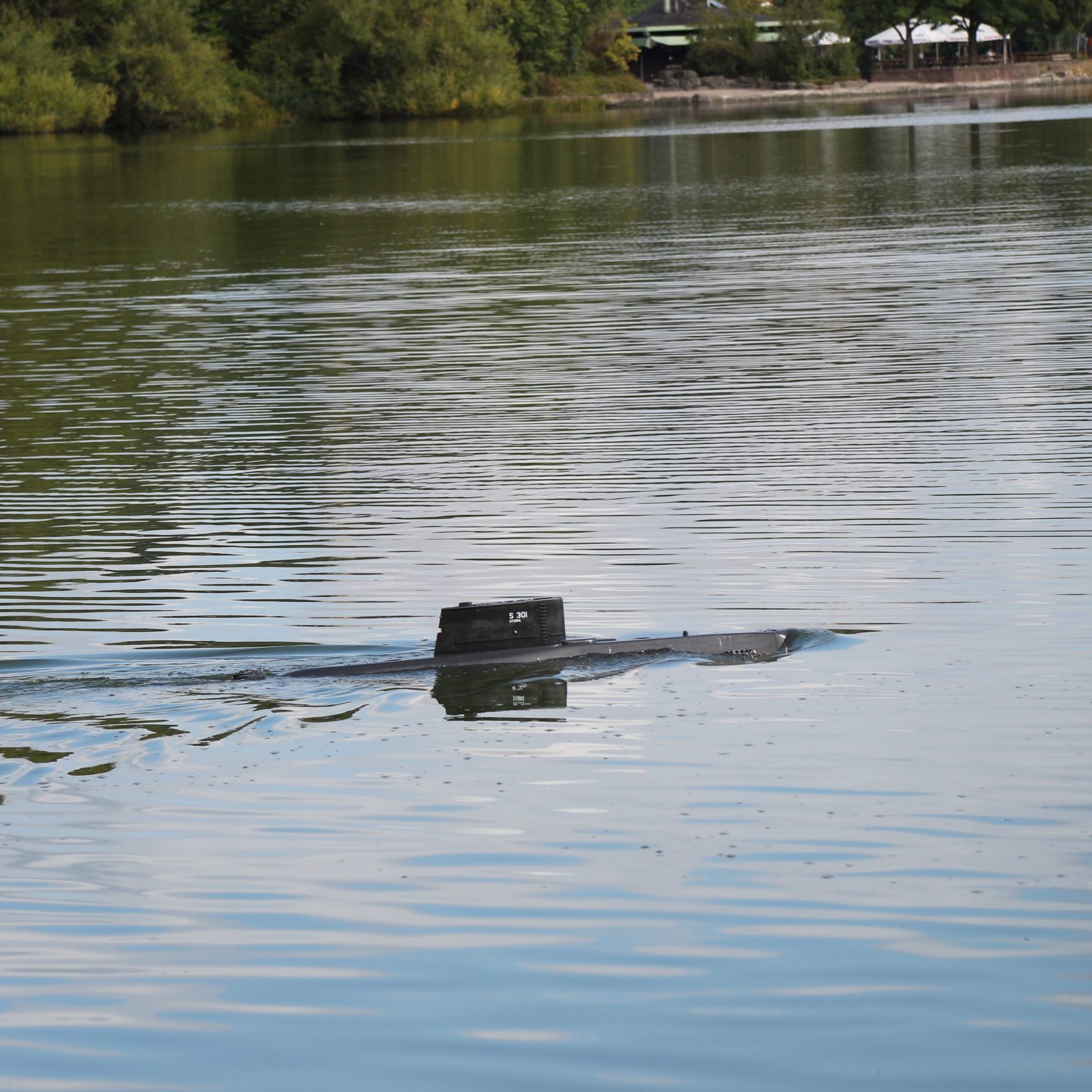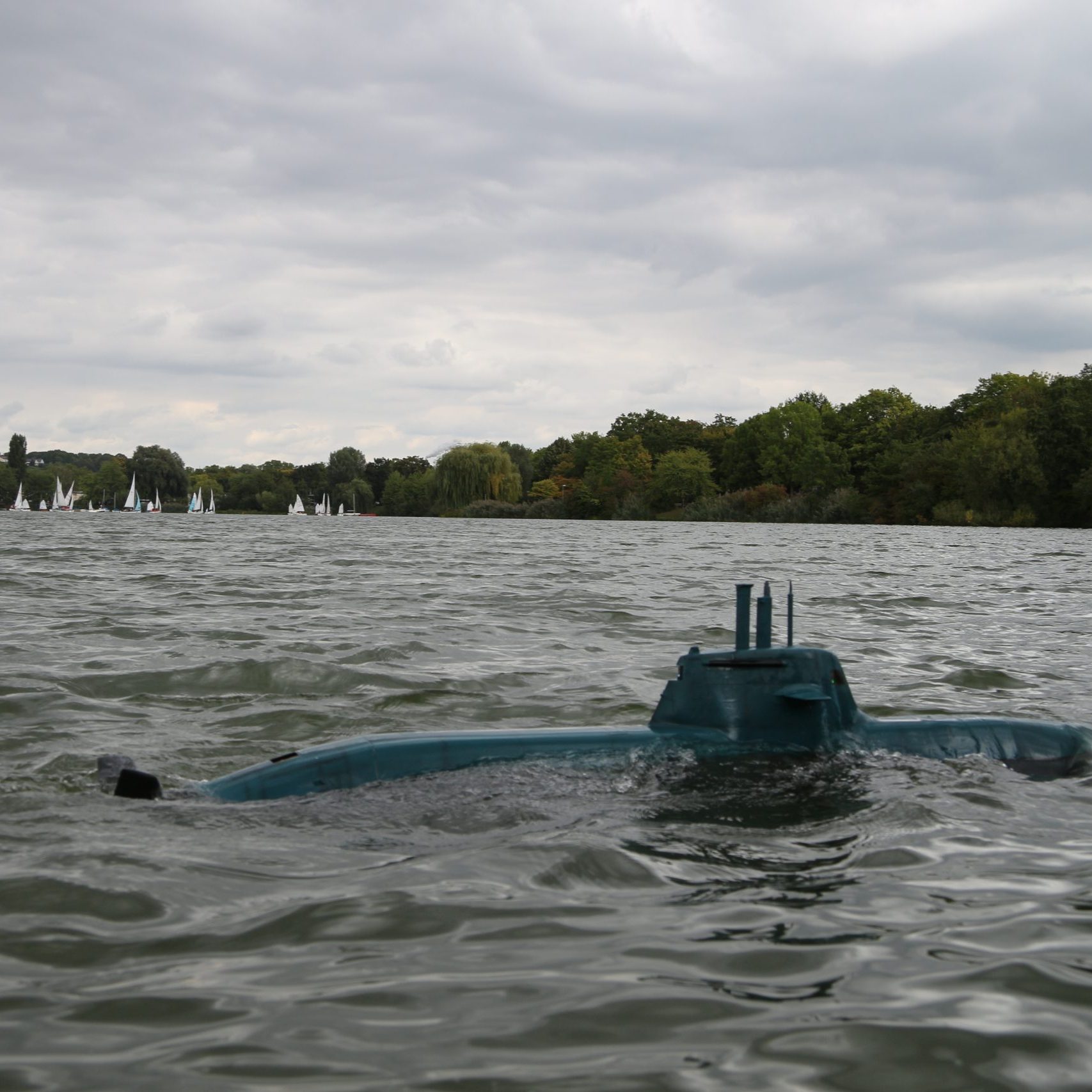 1240h: Sascha wollte mit seinem Schlepper ein Boot abschleppen. Deswegen hing er einfach mal die A11 von Egon an. Da er aber nur ein Seil hatte, dieses auch noch am rechten Turmruder befestigte, funktionierte das nicht sonderlich gut. Einmal in Bewegung wollte das 42kg U-Boot immer nur gerade aus fahren. Der Schlepper hatte enorme Probleme das Boot in eine Kurve zu zwingen.