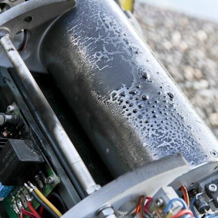 12:00 PM: The Makrele was lying at the pier, and I noticed that it wasn’t responding either. The 60 kg fish was pulled out of the lake. When I opened the boat, a distinct smell hit us. We all know this smell: burnt electronics! We removed the rear technology and saw that the power switch was destroyed, and the pressure body was slightly singed.