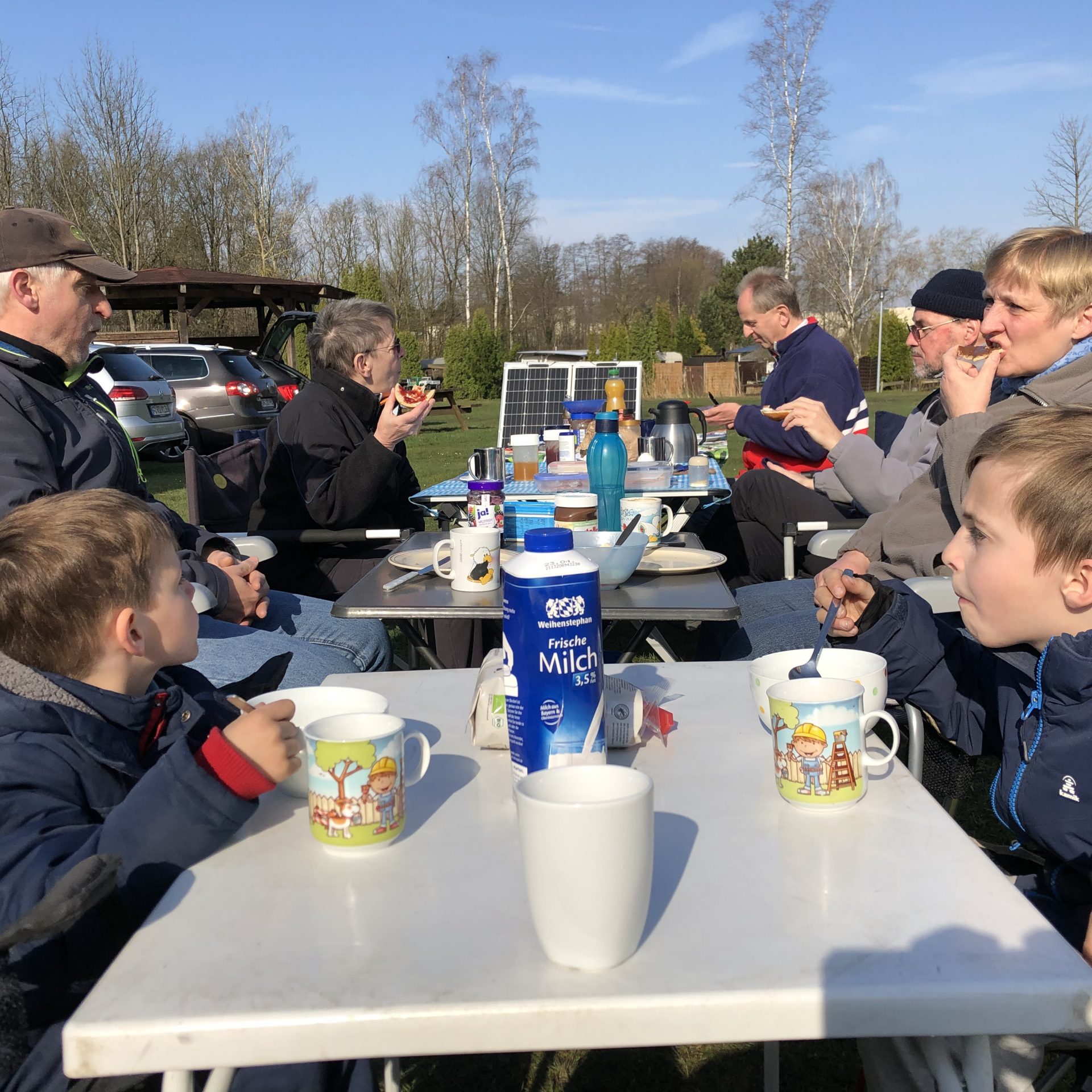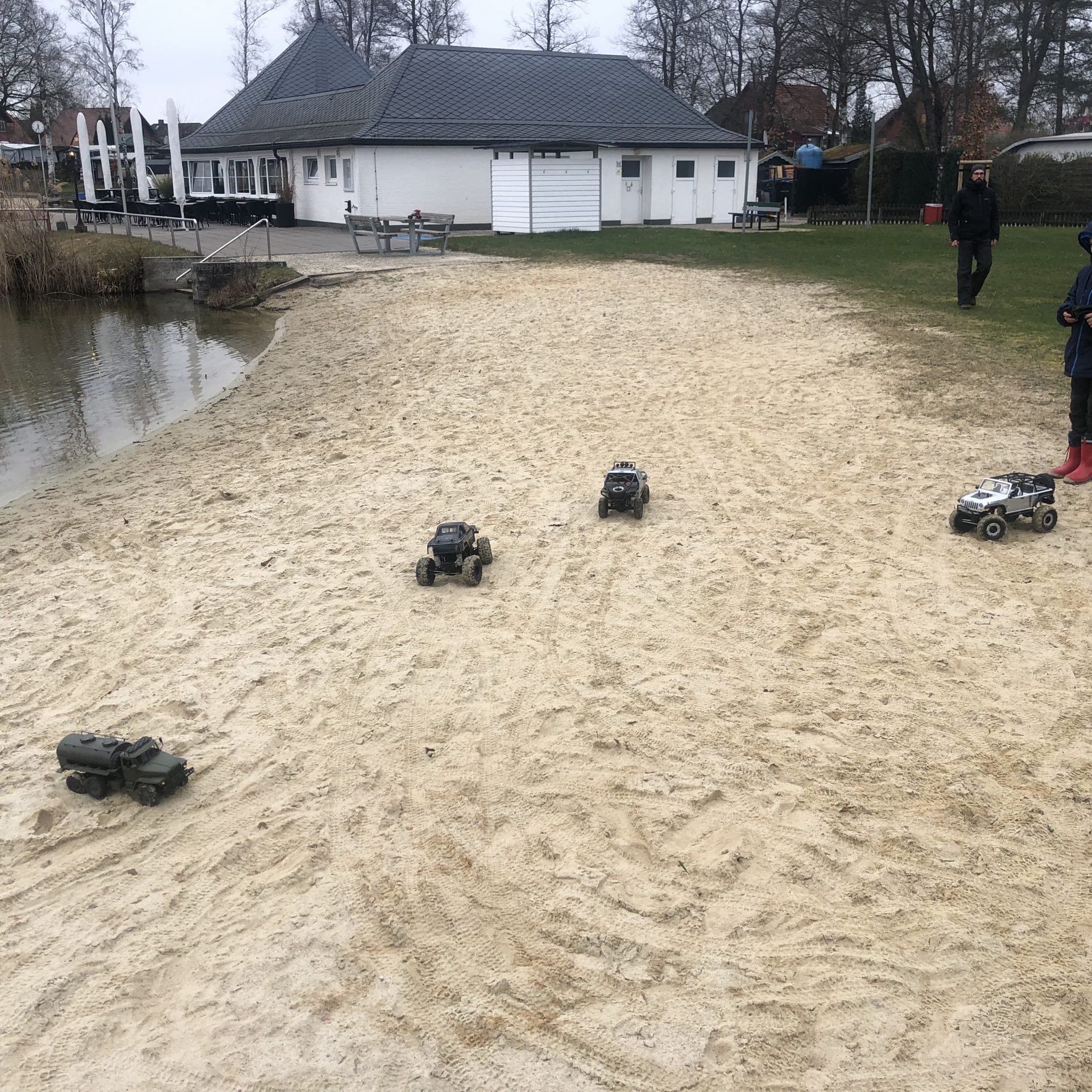 In April, the meeting in Knesebeck was scheduled. Unfortunately, Humboldtsee is no longer properly accessible due to various measures, so the Knesebeck outdoor pool was organized as the new meeting point. After almost 4 hours of driving, we arrived in the morning just in time for breakfast. After a hearty breakfast, we headed to the waterway. There is a beautiful sandy beach and a large jetty available. Unfortunately, the weather was quite chilly, and even at night, temperatures dropped below 10 degrees Celsius. However, with a heater and an extra blanket, it was bearable. The hot shower in the morning after a cold night was very pleasant. Nevertheless, we all enjoyed boating extensively, and the children spent hours driving their Springertugs and Crawlers. The cocoa machine was also there again, providing hot cocoa not only for the kids.
