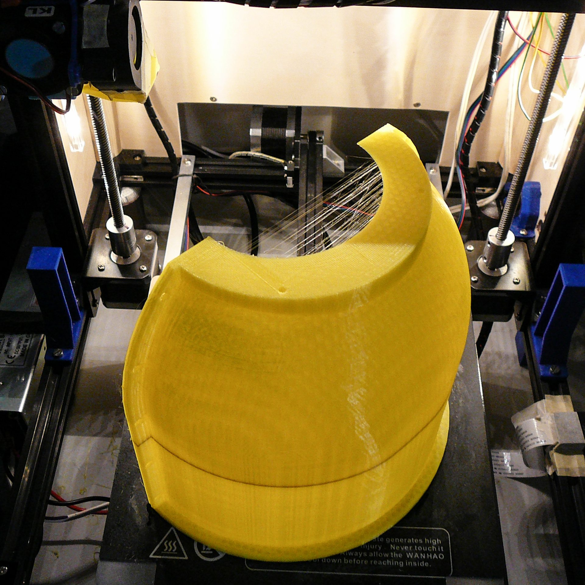 Aber auch ein einfacher 3D-“Wurstleger“ liefert viele brauchbare Teile für das „Innenleben“ eines Modells. Warum dann nicht auch die negative Form, in die laminiert, wird drucken?