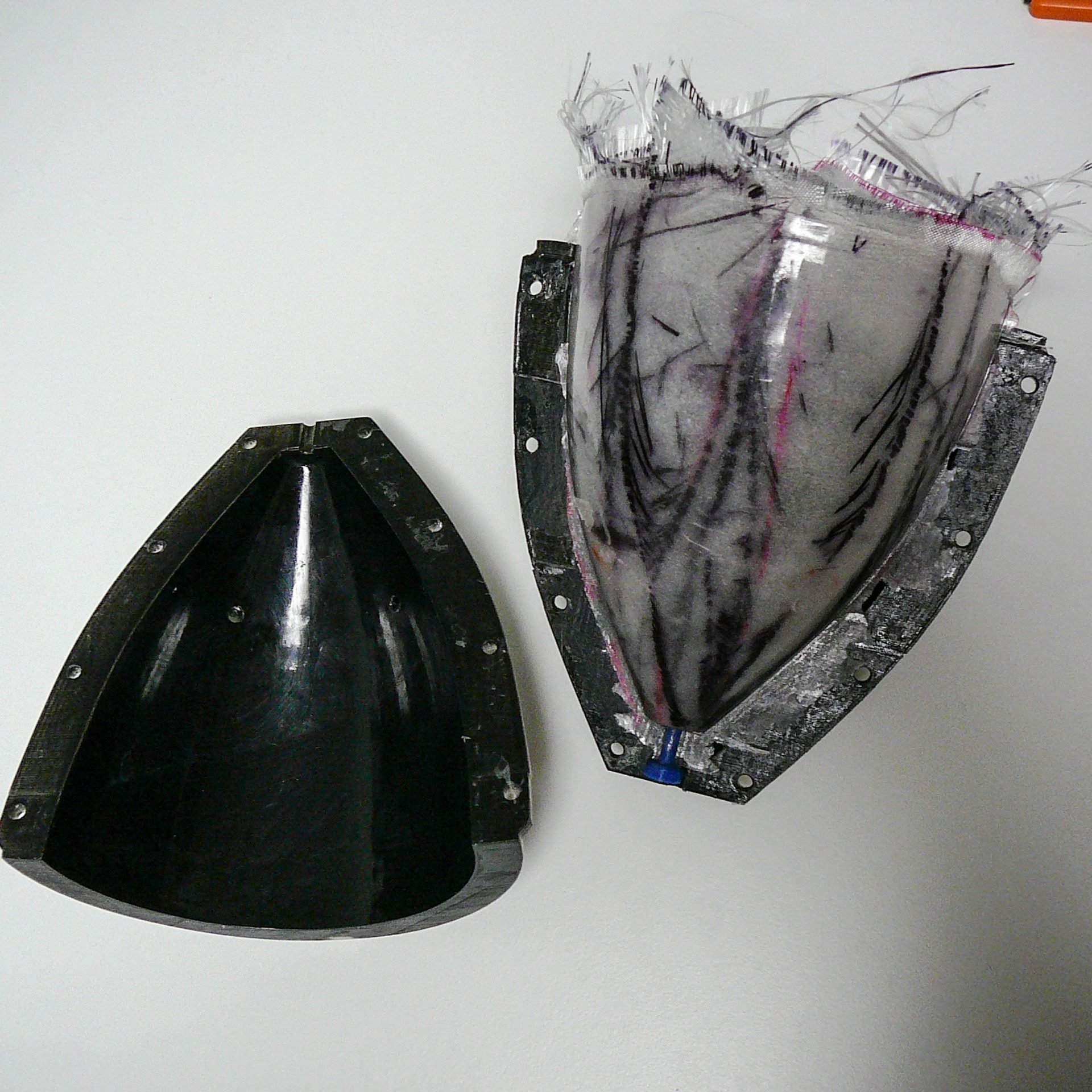 But even a simple 3D printer can produce many useful parts for the “inner workings” of a model. So why not also print the negative mold into which the lamination is done?