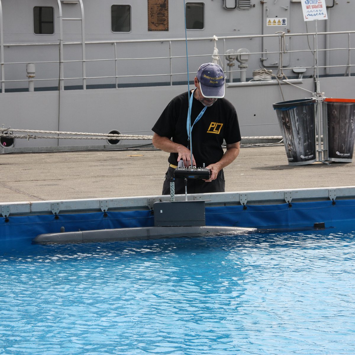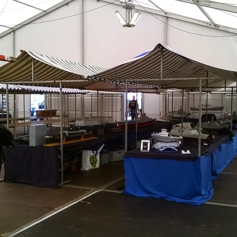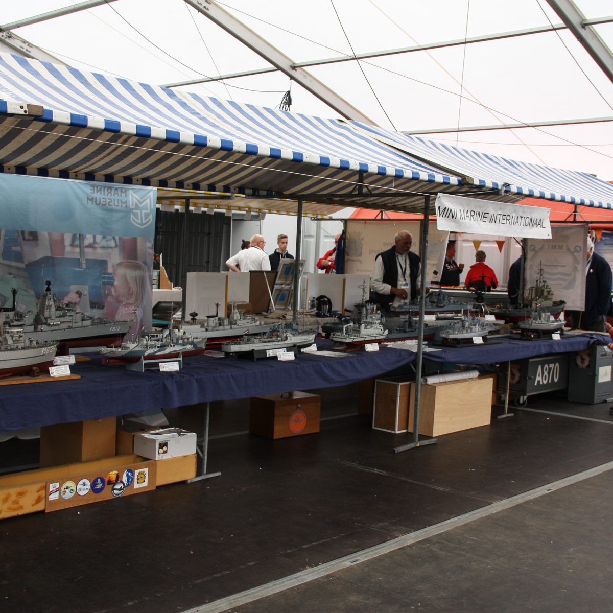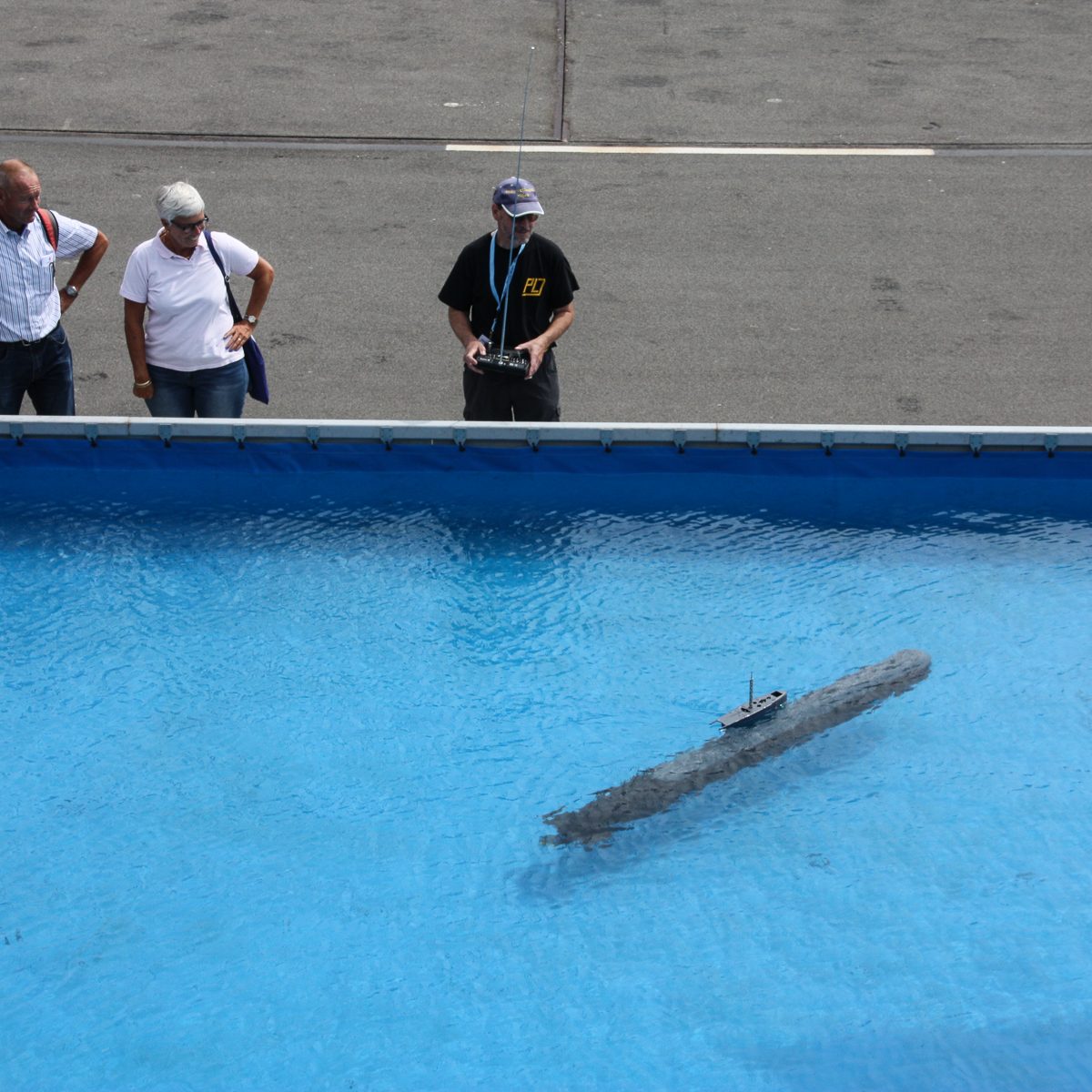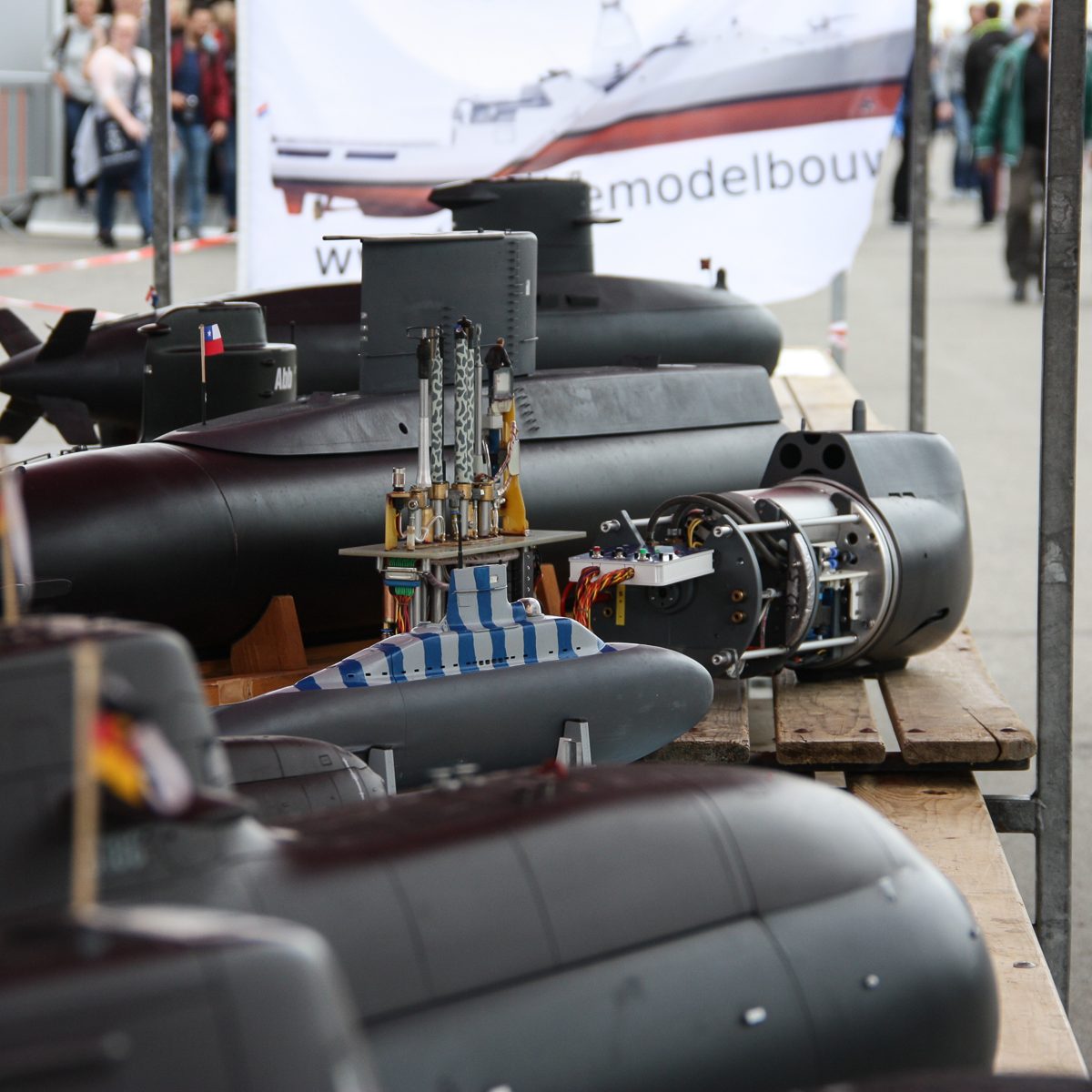 Am Abend durften wir unsere Modelle im Gebäude des Onderzeedienses unterstellen, das ersparte uns das erneute Verladen in die Autos. Am Freitagmorgen begann dann die eigentliche SAIL und die Menschenmassen strömten nur so auf das Gelände. Wir hatten zusammen mit Leon und Rob vom MMN den Stand beschickt. Nach einer Weile stieß noch Freek vom MMI dazu und nachmittags kamen auch noch Klaus und Markus als Gäste des MMI. Dann war unsere kleine aber feine Flotte komplett. Das Fahren im recht kleinen Wasserbecken erwies sich als nicht so einfach, gerade die großen Boote konnten nur vorsichtig ihre Runden drehen. So versuchten wir die Zuschauer mit den kleinen Booten zu unterhalten.