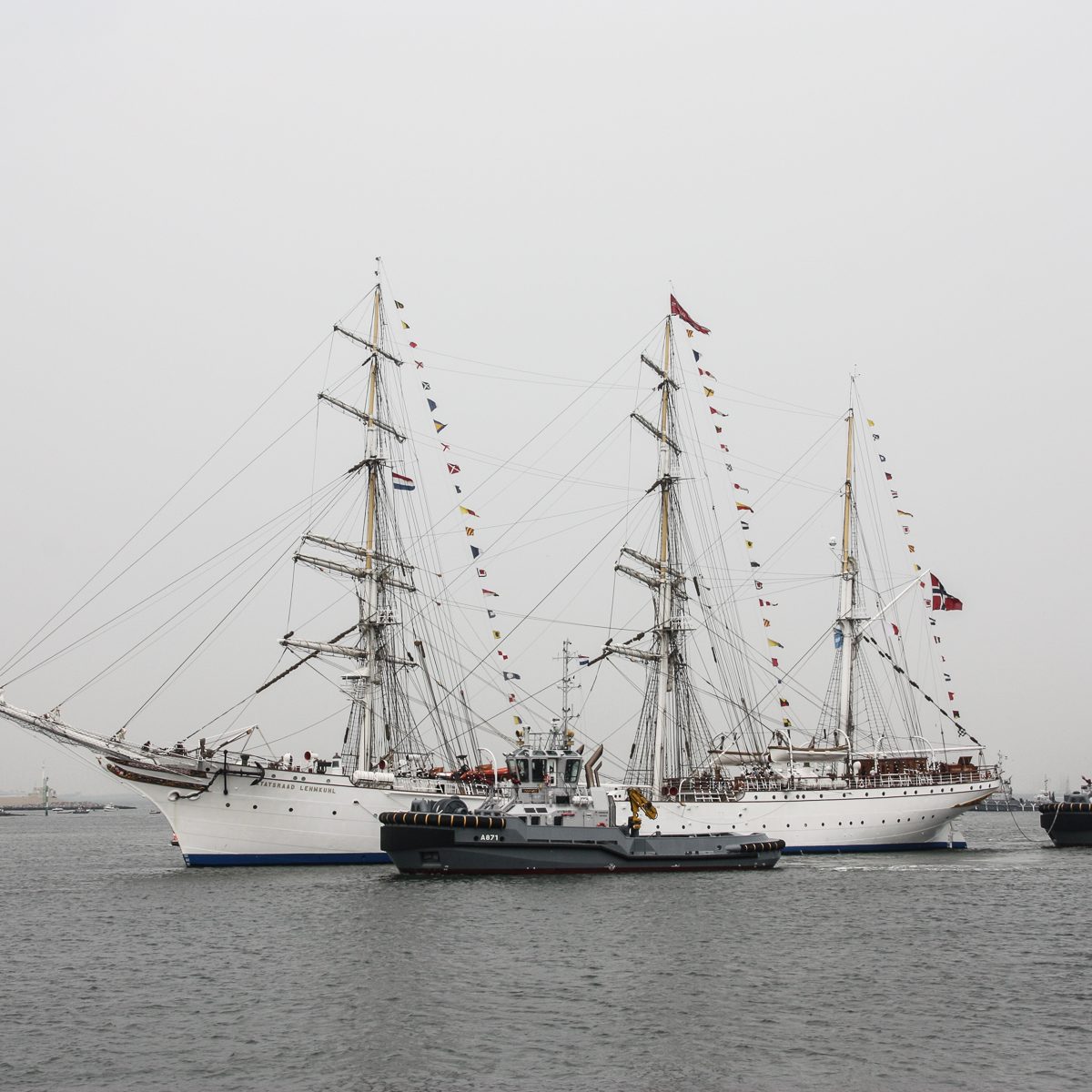 Im zivilen Teil des Hafens, der an die Basis anschließt fand die SAIL 2017 statt und schon am Donnerstagnachmittag trafen die ersten Großsegler ein. Die norwegische Stadsrad Lehmkul wurde wie die anderen Schiffe auch mit zwei Schleppern zu ihrem Liegeplatz gelotzt. Im Laufe des Nachmittags und am nächsten Morgen trafen noch zahlreiche große und kleine Schiffe ein. Die russischen Großsegler Krusenstern und Mir, Tallships aus Argentinien, Spanien, Frankreich, England Portugal und die feierfreudigen Brasilianer machten im Hafen fest.