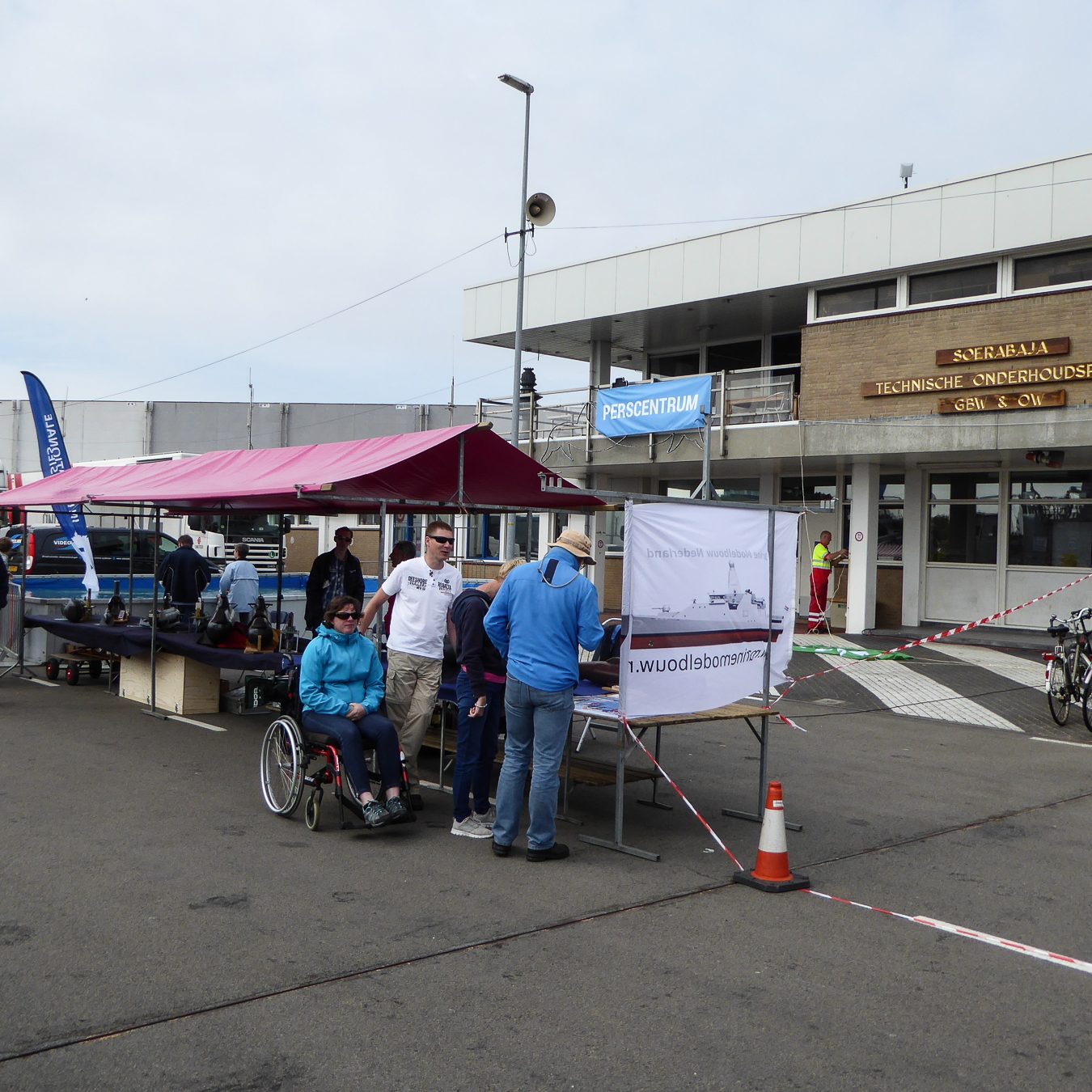 Nach 400km Fahrt kamen wir nachmittags auf der Basis an. Leon holte uns am Tor ab und lotste uns zu unseren Freunden, die schon angefangen hatten ihren Stand auf zu bauen. Leider hatten die Organisatoren beschlossen nur die Uboot-Aussteller direkt am Onderzeedienst zu platzieren. Dadurch mussten wir die Gruppe teilen. Das war erst mit etwas Lauferei verbunden. Nachdem wir uns alles angesehen hatten fuhren wir zu unserer Unterkunft. Die Jungs vom MMN hatten sich in einem Scoutheim eingemietet. Eine einfache und preiswerte Schlafsackunterkunft. Völlig ausreichend für uns Alle. Jeden Morgen und jeden Abend gingen wir in die Kantine der Marine, wo wir gut und günstig Essen konnten. Am Donnerstagmorgen rollten wir wieder auf die Basis, dieses Mal mussten wir uns am Tor einen Besucherausweis besorgen. Das war am Vortag nicht – komisch. Donnerstag war den Veteranen der Marine vorbehalten, dadurch war bei uns noch nicht so viel los und wir konnten uns auf der Basis umsehen. Die niederländische Marine hatte sich wirklich viel Mühe gegeben. Zahlreiche Schiffe aller Klassen konnten besichtig werden, natürlich auch ein Boot der Walrussklasse. An Land gab es viele Vorführungen und Aktionen zum mitmachen.