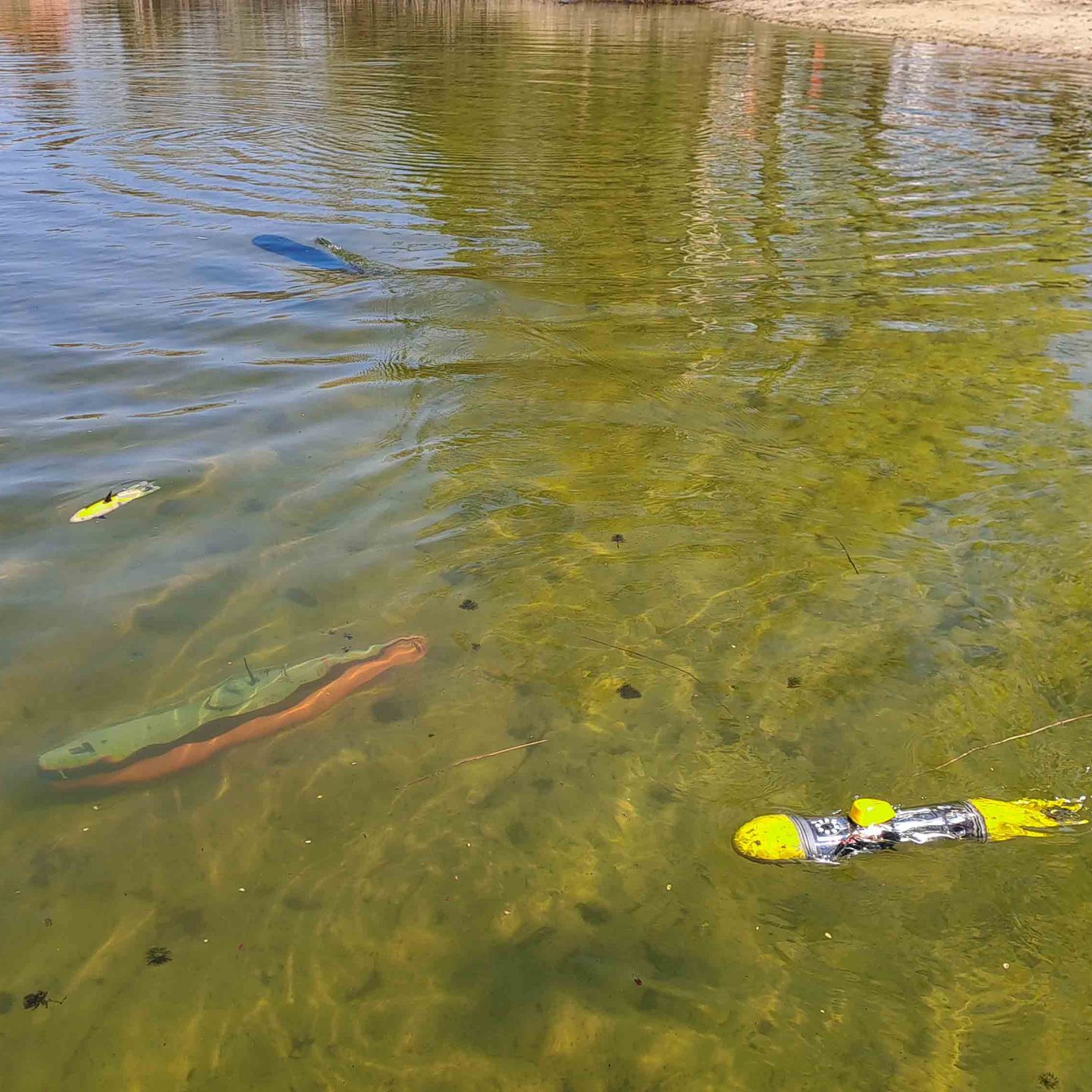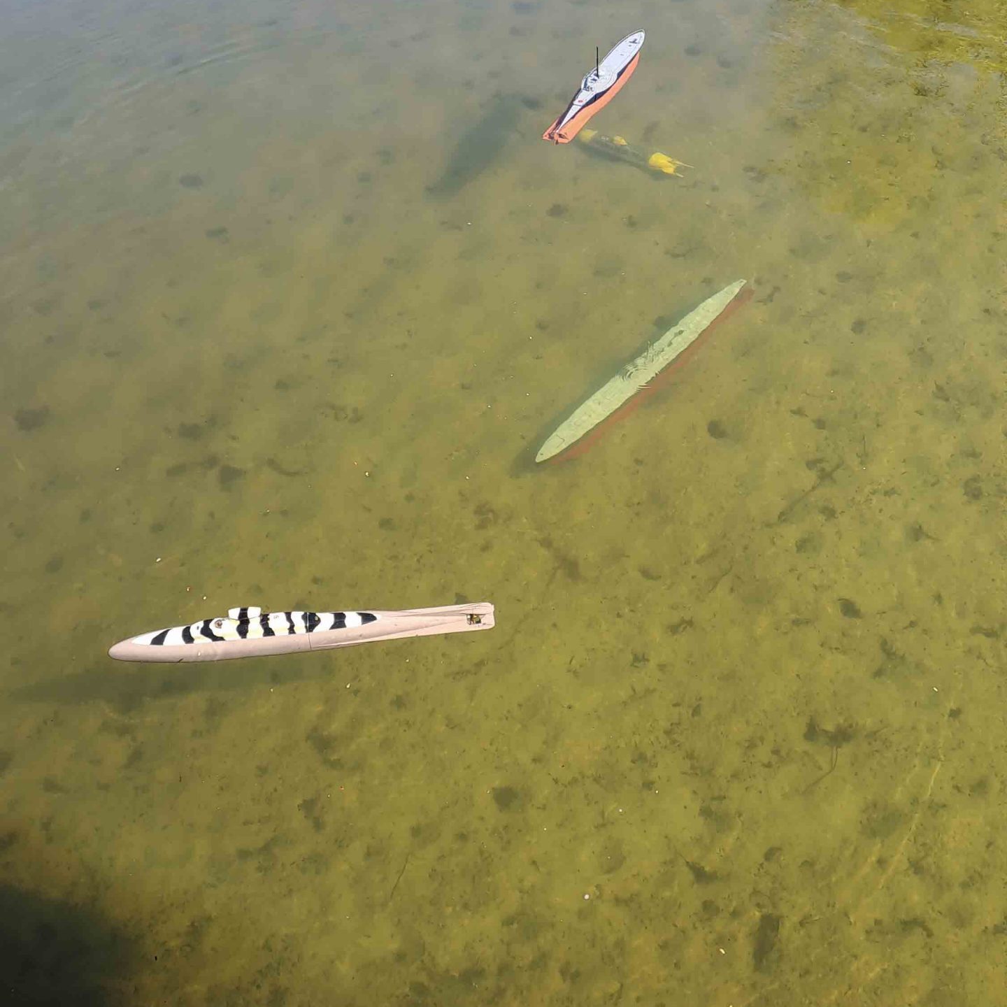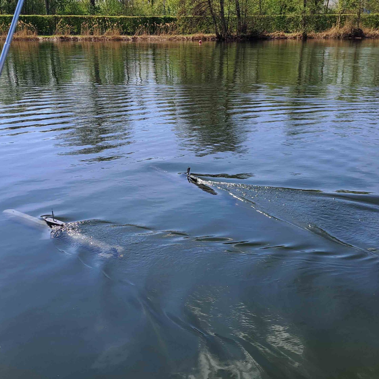 Die ersten beiden Tage wurden intensiv für die Lösung technischer Probleme und für die Einarbeitung in neue Technik und Software genutzt. Am Ostersonntag und Montag gab es dann bestes Wetter zum Fahren im See, zu unserer Freude war die Wasserqualität wieder mal top. Es waren mal wieder viele verschiedene Boote aller Epochen im Wasser, von 2m Pressluftboot bis zum 15cm Hai. Wie immer hat es viel Spaß gemacht, erín erfolgreicher Saisonauftakt, was will man mehr 🙂