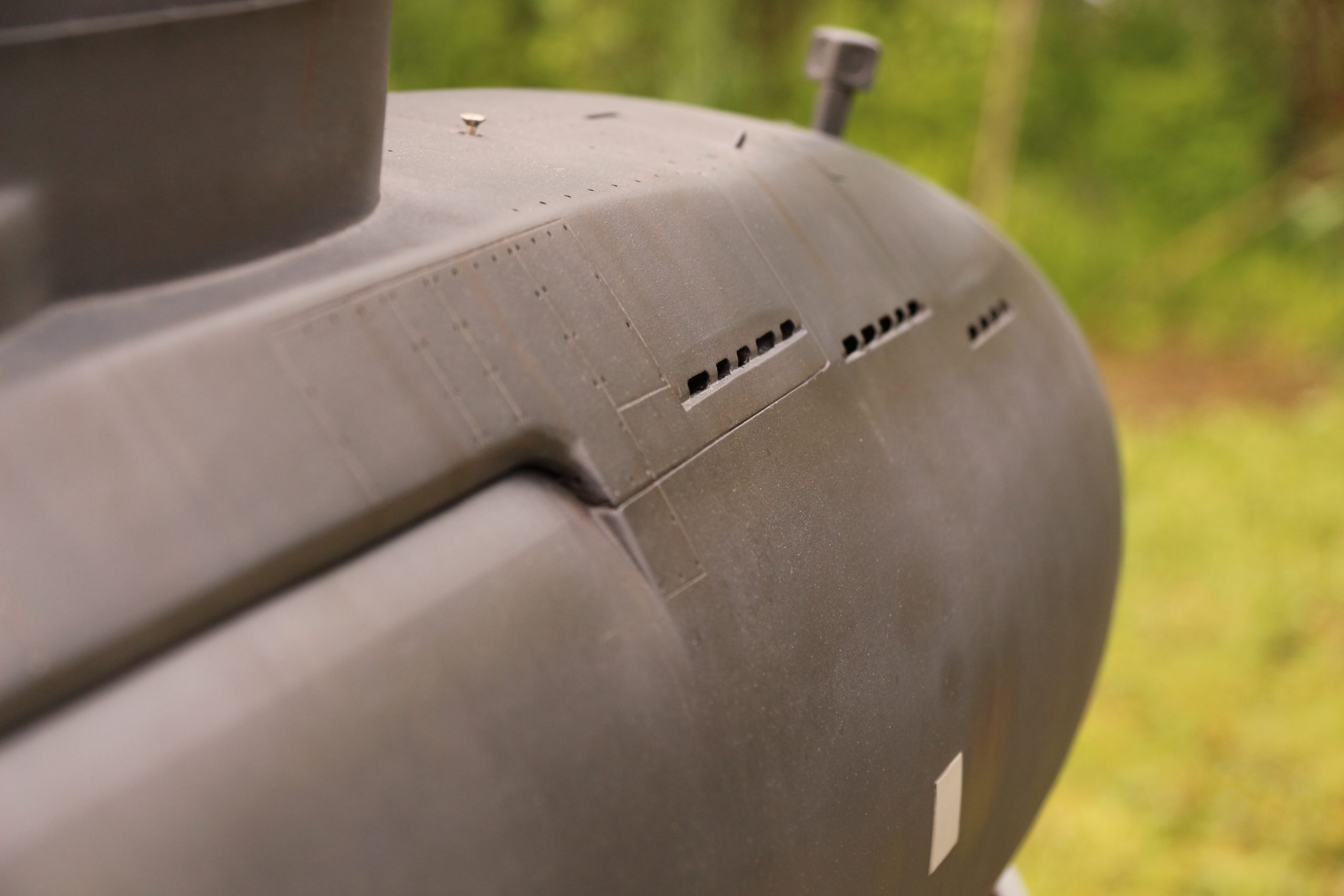 DetailsDas Urmodell Ein Beitrag von Egon Die PU-Blöcke habe ich mit genügend Aufmaß auf der Kreissäge zugeschnitten. Alle Teile wurden zuerst grob geschruppt, danach mit einem Radiusfräser abgezeilt und zum Schluß fein geschlichtet. Das Ergebnis ist eine fast fertige Oberfläche die nur sehr wenig Nachschleifen erfordert. Die Trimmtanks wurden aus Aluminium in einer Kleinserie gefertigt.…