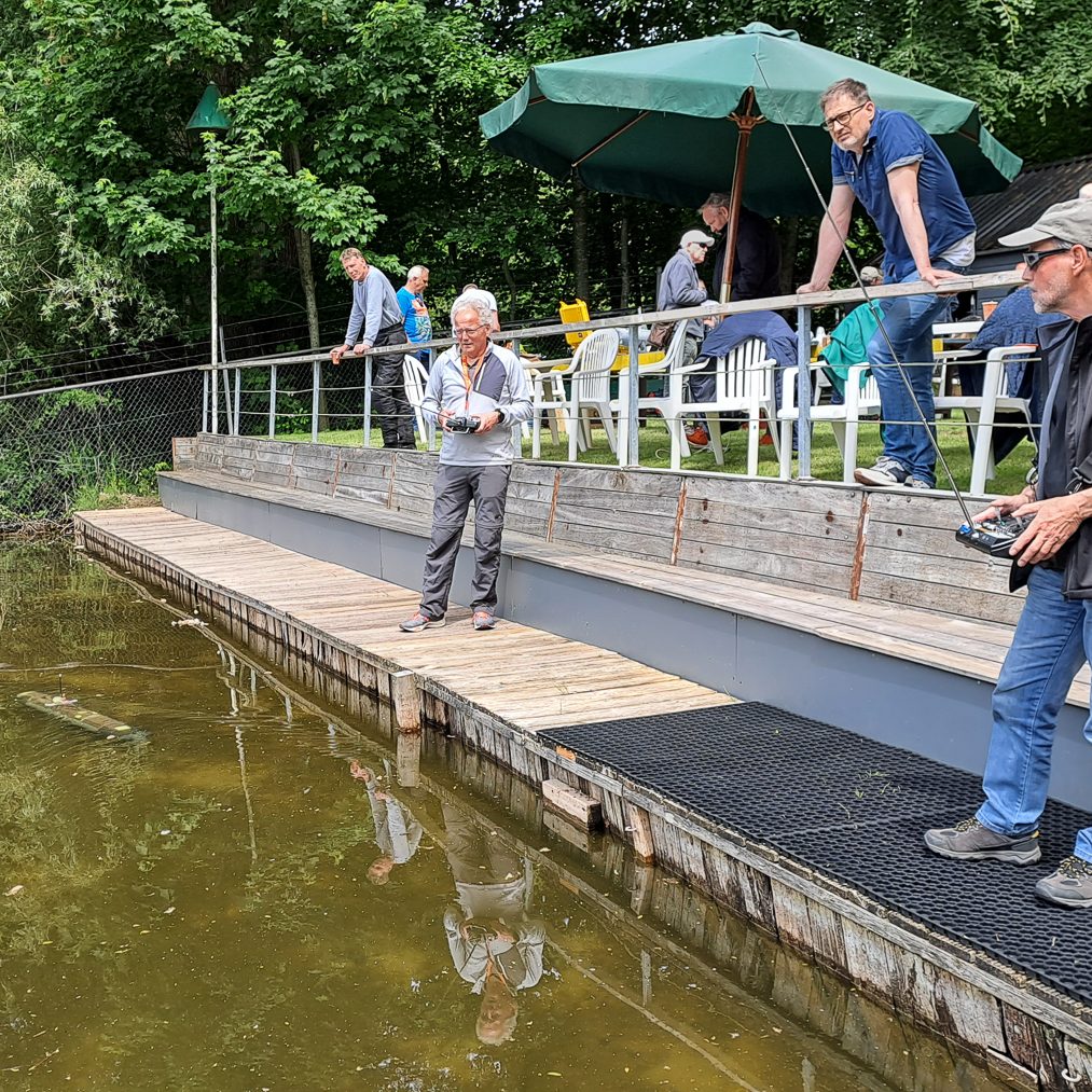 Every year on Whit Monday, the model boat builders of Vargoup Flevoland, alternating with SMG IJmond/Heemskerk, organize a model boat meeting. We thought the club facility in Biddinghuizen was worth a visit. The event was perfectly organized; as soon as we arrived, we were greeted by Gerben and treated to coffee and cake. Afterwards, we could place our boats on the prepared tables. This year wasn’t quite as crowded as our last visit, but there was a lot of new things to see.