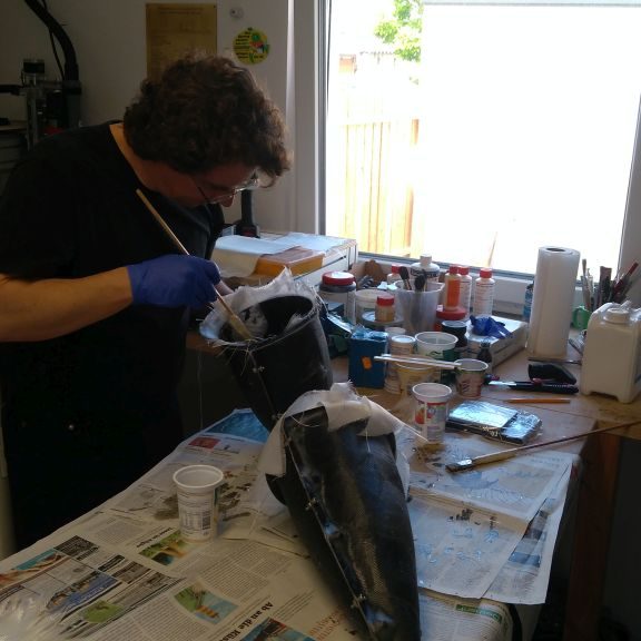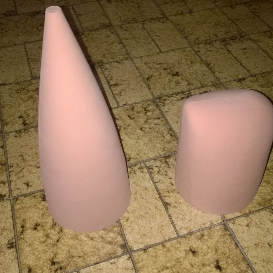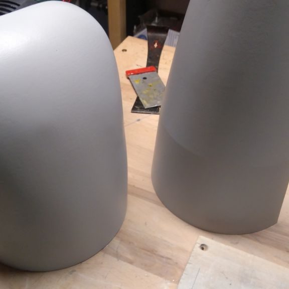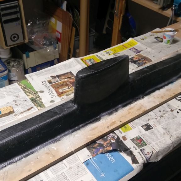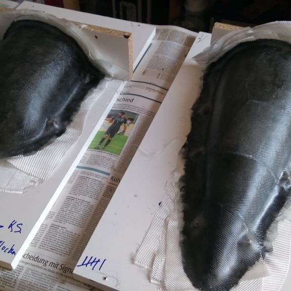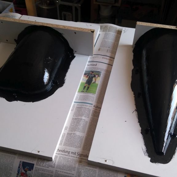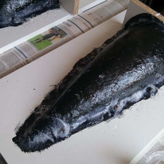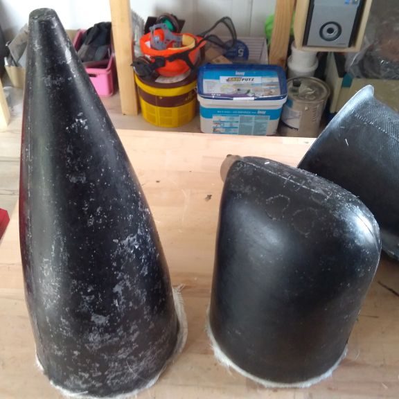 Die PU-Blöcke habe ich mit genügend Aufmaß auf der Kreissäge zugeschnitten. Alle Teile wurden zuerst grob geschruppt, danach mit einem Radiusfräser abgezeilt und zum Schluß fein geschlichtet. Das Ergebnis ist eine fast fertige Oberfläche die nur sehr wenig Nachschleifen erfordert.