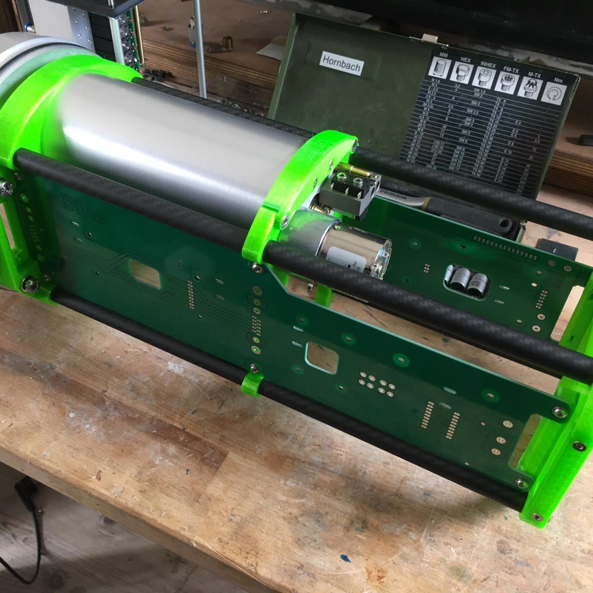 Nach einer längeren Pause nahm das Projekt wieder Fahrt auf und so konnte die Elektrische Abteilung das bisherige Konzept neu überarbeiten. Es standen zwei wesentliche Dinge im Vordergrund, ein überarbeiteter Lageregler, das MMI-Board und die Tatsache das es einen Lieferanten gibt, der zu unschlagbar niedrigen Preisen die Leiterplatten fertigen konnte.